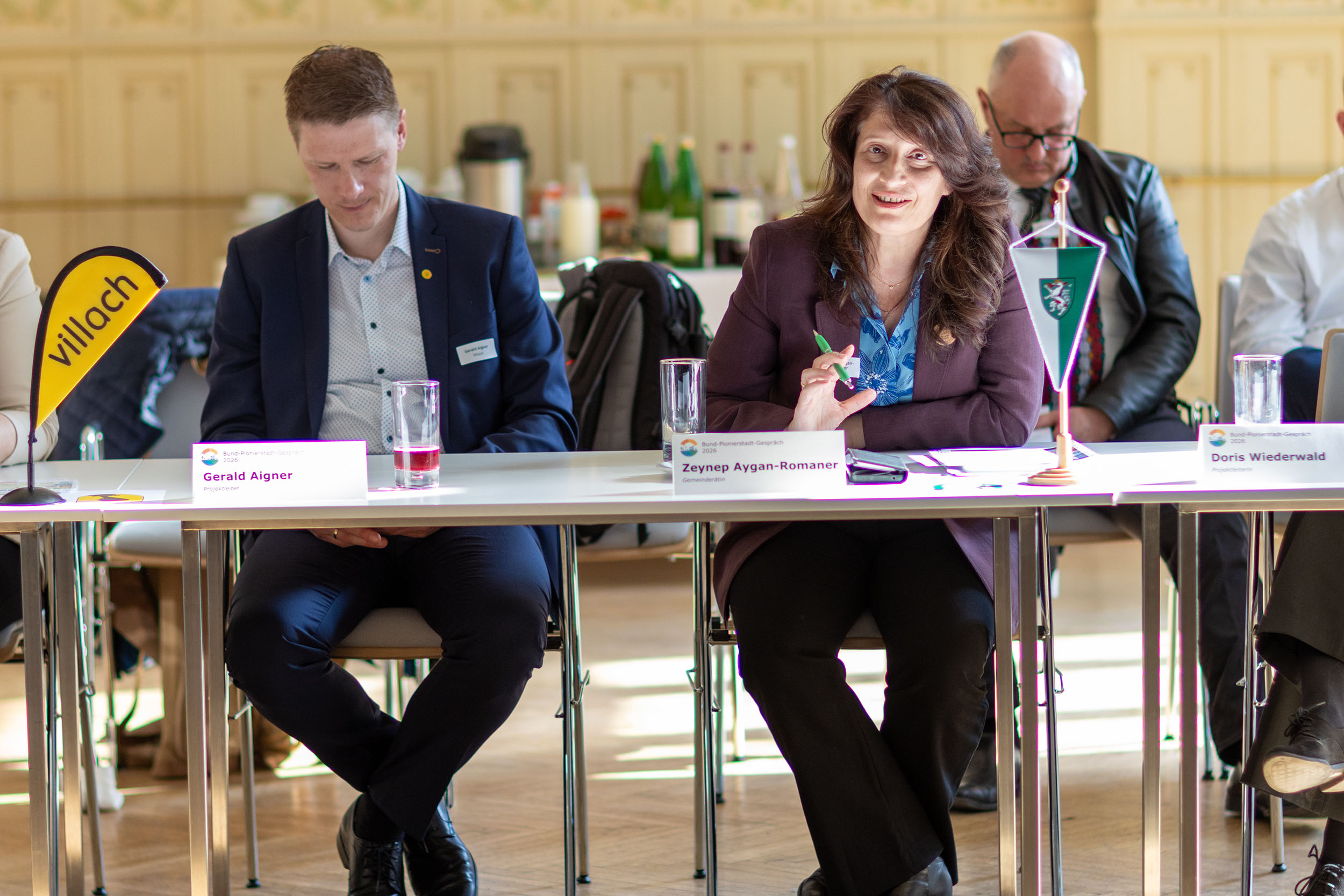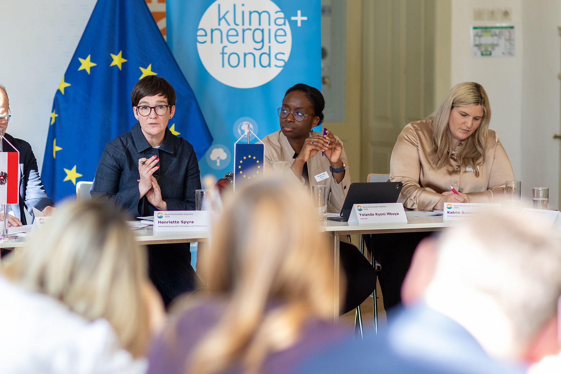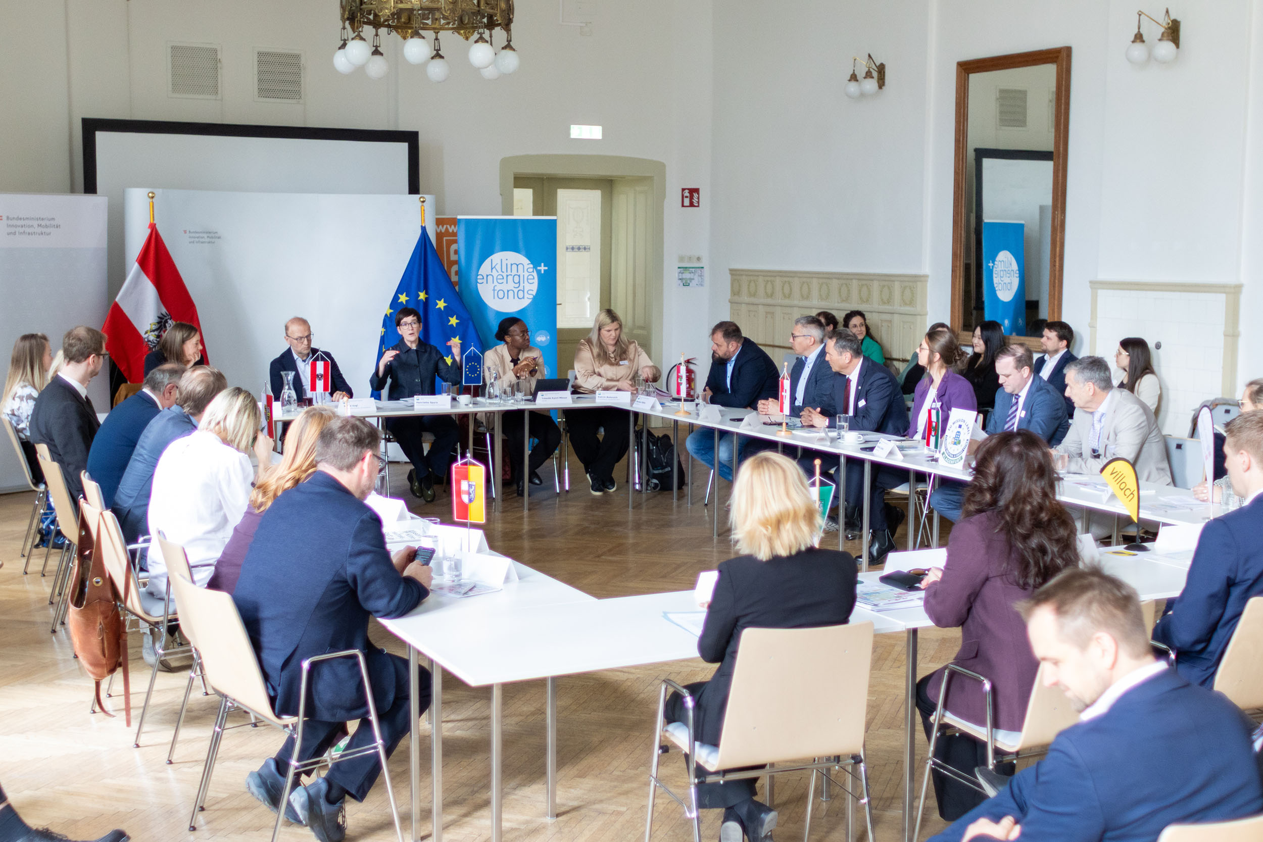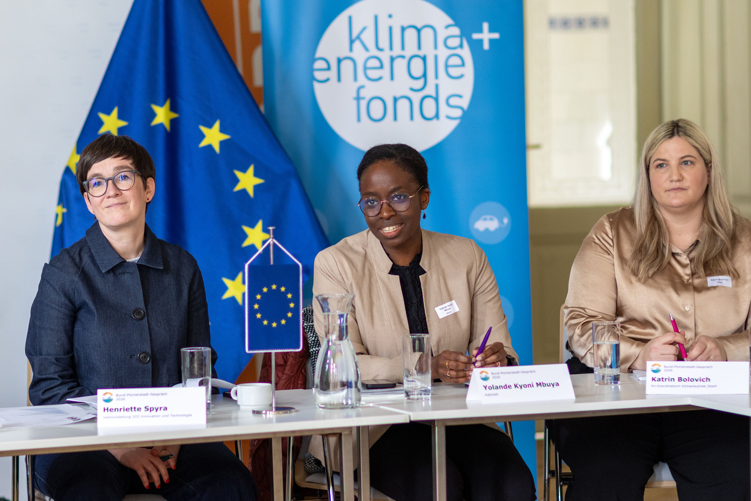 Beim Bund-Pionierstadt-Gespräch am 23. März 2026 im Jugendstiltheater am Otto-Wagner Areal in Wien kamen die politischen Vertreter:innen der zehn österreichischen Pioniergroßstädte mit Sektionschefin Henriette Spyra, Bundesministerium für Innovation, Mobilität und Infrastruktur, Bernd Vogl, Geschäftsführer des Klima- und Energiefonds, sowie zuständigen Fachreferent:innen zusammen. Sie tauschten sich über zentrale Rahmenbedingungen, konkrete Herausforderungen und umsetzungsorientierte Lösungen für die nachhaltige Entwicklung der österreichischen Städte aus. Im Mittelpunkt standen Themen wie klimaneutrale Energieversorgung und Mobilität, regionale Wertschöpfung, Versorgungssicherheit sowie Maßnahmen zur Anpassung an den Klimawandel, um die Lebensqualität in den Städten langfristig zu sichern und gleichzeitig den Wirtschaftsstandort Österreich zu stärken. Die Pionierstädte tauschten sich untereinander aus, teilten Erfahrungen aus ihren Projekten, lernten voneinander und entwickelten gemeinsam Lösungen, die auch anderen Gemeinden zugutekommen können.