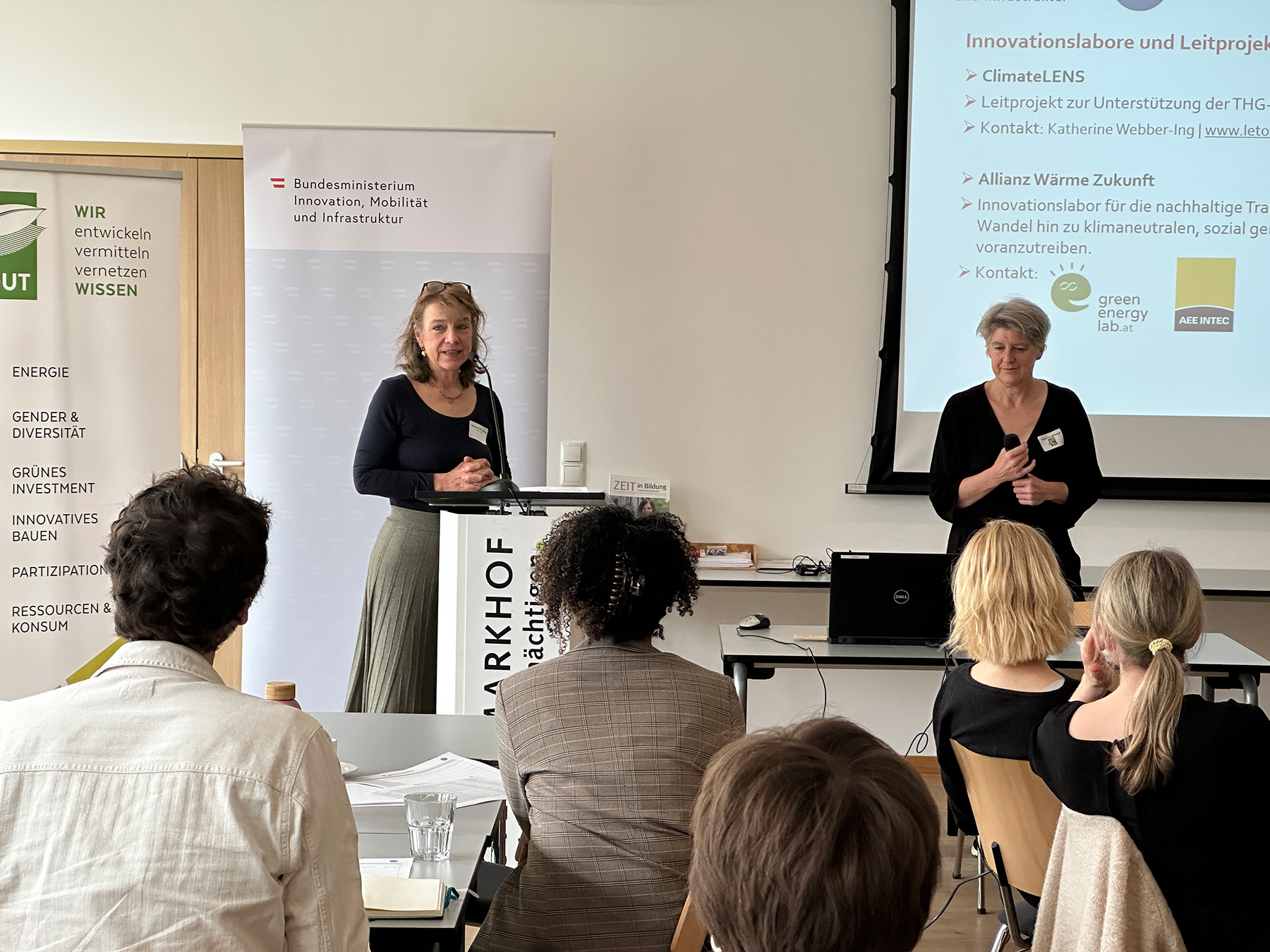 Am zweiten Tag standen weitere zentrale Themen im Fokus: Energie, Digitalisierung und Daten, Gebäude und Sanierung, blau-grüne Infrastrukturen sowie soziale Innovation. Auch an diesem Tag präsentierte sich Allianz WärmeZukunft als neues Innovationslabor. Auf die Bühne kamen anschließend die etablierten Innovationslabore Digital Findet Stadt, RENOWAVE.AT und GRÜNSTATTGRAU, um ihre Tätigkeitsfelder und Unterstützungsangebote vorzustellen.