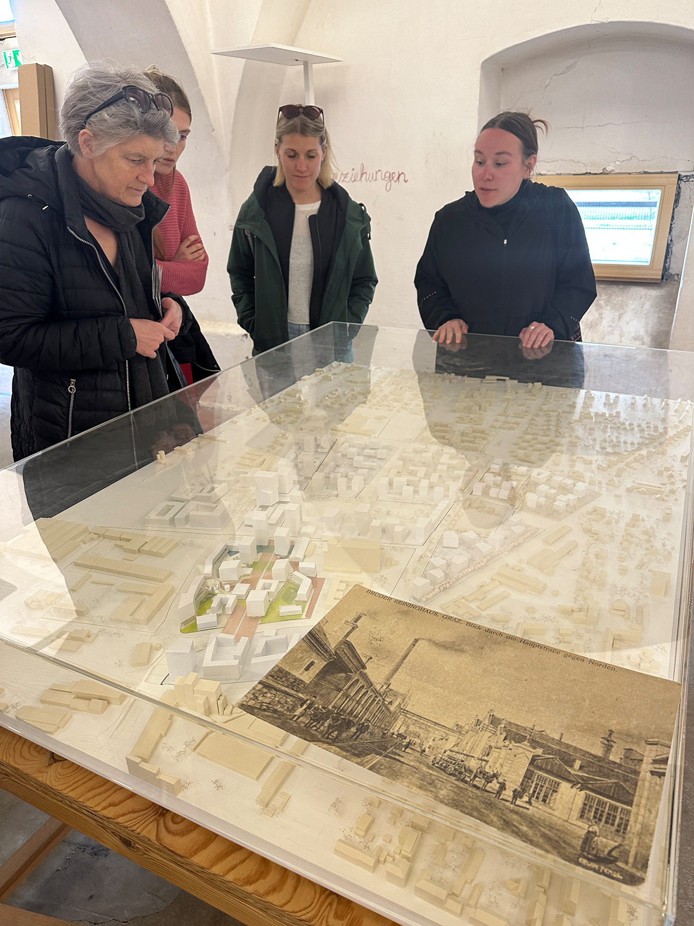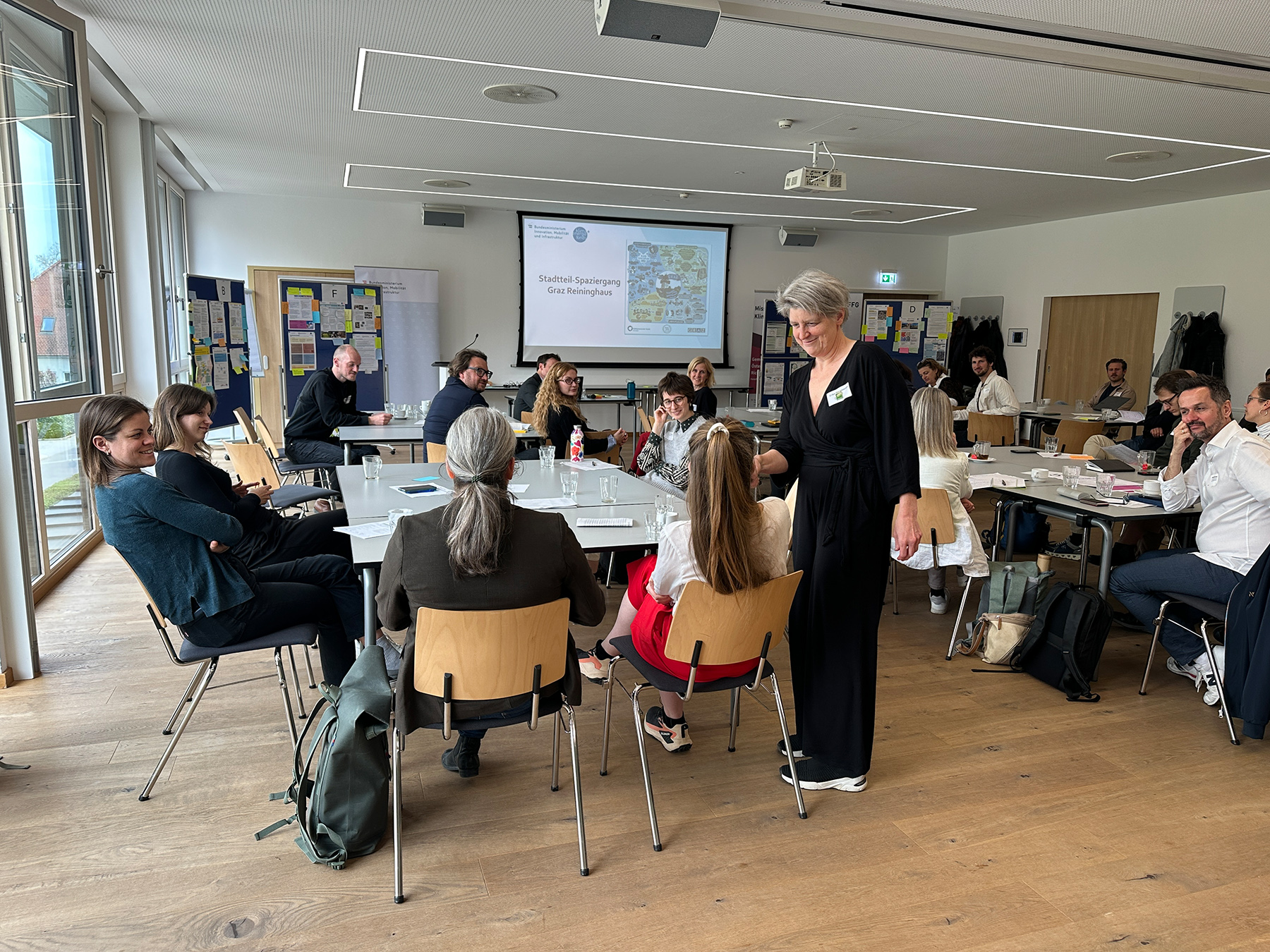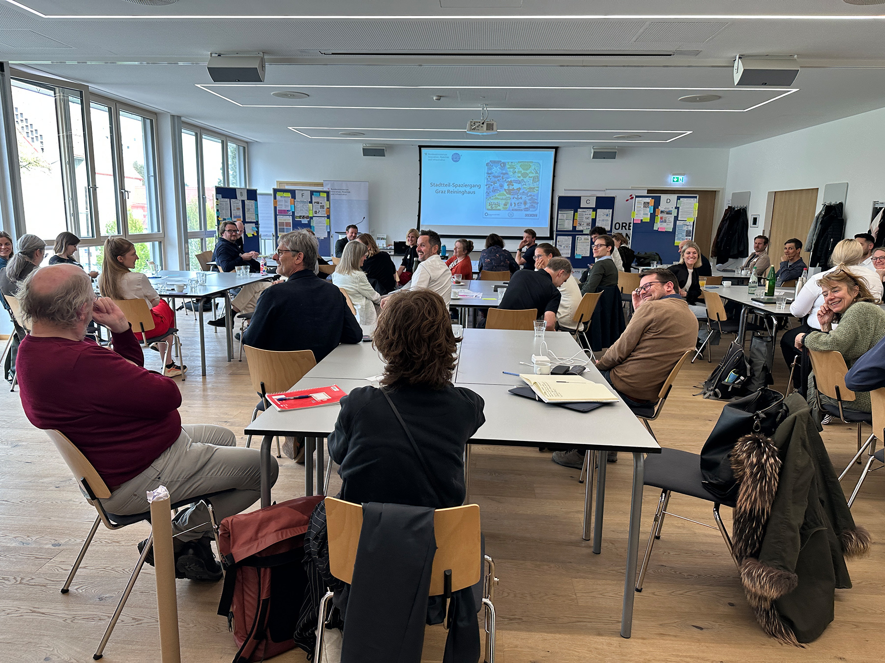 Den Ausklang der beiden Tage bildete jeweils ein Spaziergang ins nahegelegene Stadtentwicklungsgebiet Reininghaus, bei dem die Teilnehmer:innen spannende Einblicke in das ca. 50 Hektar große Gebiet mit 16 Quartieren gewinnen konnten. Der Stadtteil der kurzen Wege bietet mit unterschiedlichen Nutzungen und Angeboten ein attraktives neues Zentrum im Grazer Westen für insgesamt ca. 10.000 Bewohner:innen.